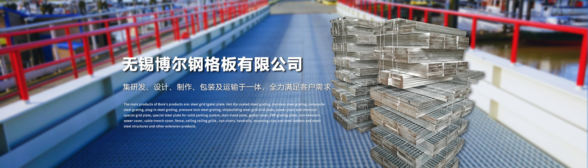 <meta name="description" content="江苏省无锡博尔钢格板厂家专业生产和销售：钢格板、316L不锈钢钢格栅板、热浸镀锌钢格板、304不锈钢水沟盖板、安装夹、楼梯踏步格栅板、复合钢格栅、船用钢格板、电厂格栅盖板、球接扶手栏杆等，提供常用规格钢格栅板理论重量计算表、价格推荐，并可上门测量及指导安装。">